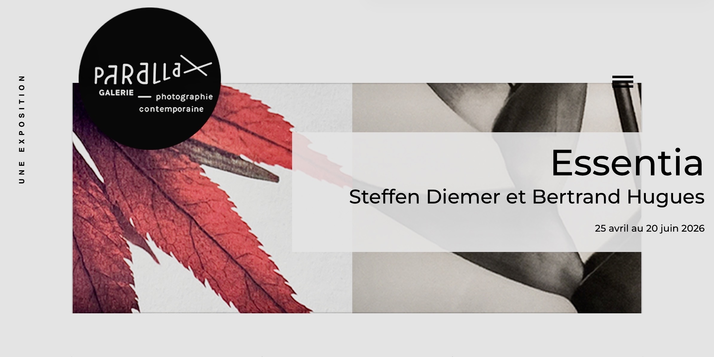 Next: Galerie Parallax Aix-en-Provence, Essentia, in collaboration with Bertrand Hugues. The exhibition runs from 25 April to 20 June 2026.